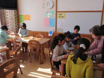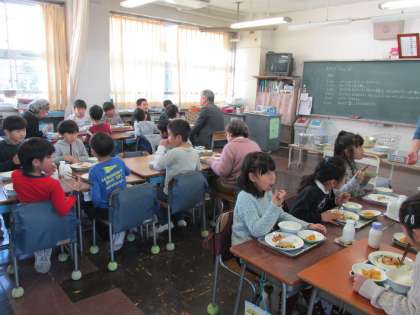 昔遊びを満喫した後は地域の方を一緒に給食を食べながら交流を深めました。
