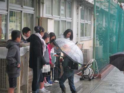 今朝も雨の降る中、募金活動を行っていました。