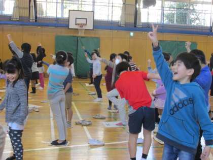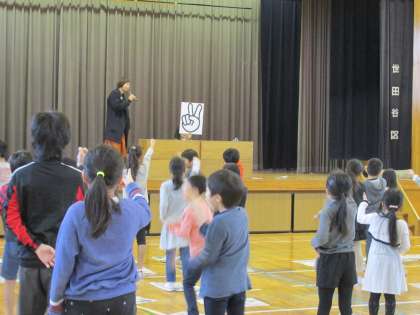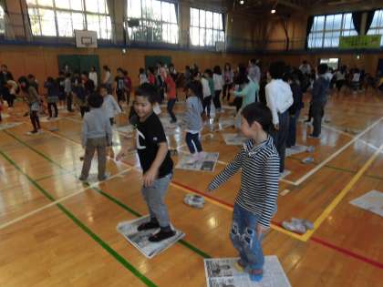 こちらも新登場「新聞紙じゃんけん」の様子です。
