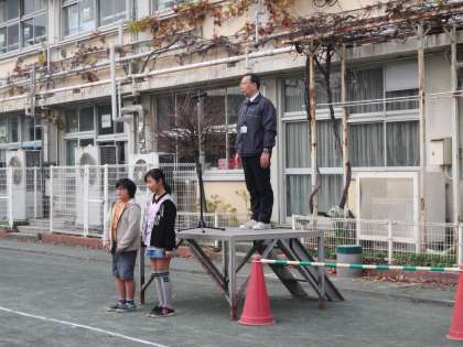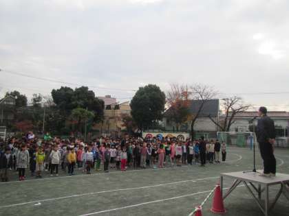 若小チャレンジ持久走期間ということもあって、今朝は運動朝会でした。