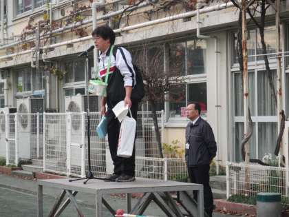 寒空の下でしたが校長先生のお話もしっかり聞き、看護当番の先生からの指導も確実にとおっています。