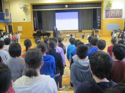 さびの部分では、手話もついて、若小らしい音楽朝会が終わりました。