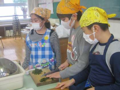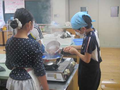 鰹節で出汁を引き、家庭科室にはだしの香りが漂っていました。