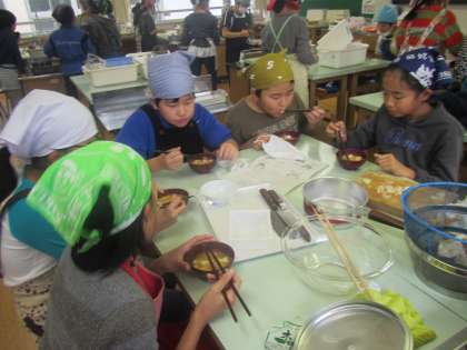 5年生が家庭科の授業でお味噌汁をつくりました。