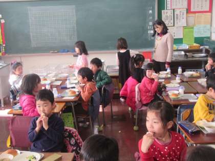 クリスマス献立初体験の1年生。
