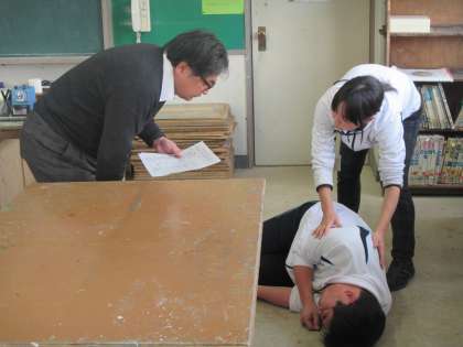 校長先生をはじめとして、先生たちも真剣に訓練を行っています。