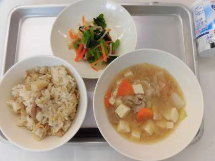 【献立】里芋ごはん・豚汁・おひたし・のむヨーグルト