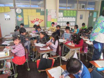 1年生が国語の時間に「きょだいなきょだいな」という学習をしています。