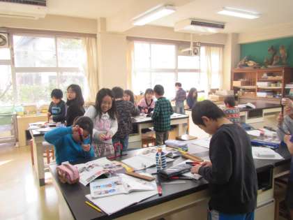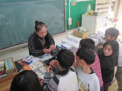 3年生が理科の時間に磁石の性質についての学習をしています。