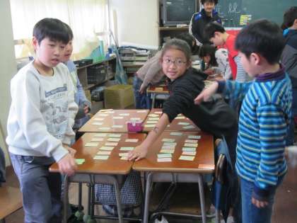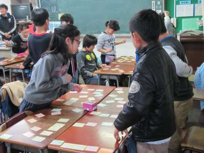 4年生が教科日本語の学習の一環で百人一首大会をしています。