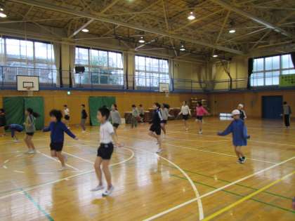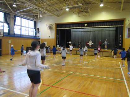 木曜の朝に若小全校で取り組むリズムなわとびのお手本を示す、ということで非常に意欲の高い5年生。