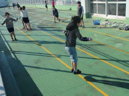 校庭が使えないため、5年生は屋上で体育を行いました。