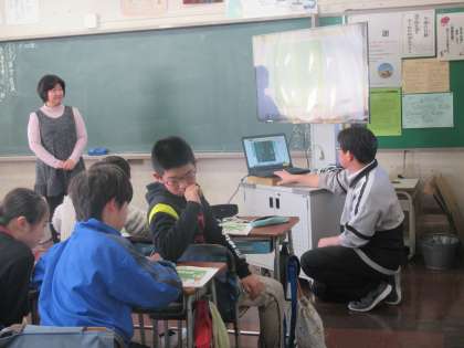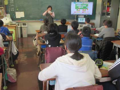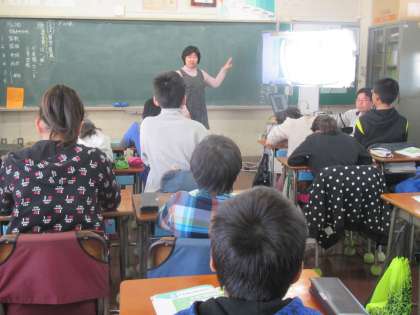 今日は高学年のクラスに外国語講師の先生が見えました。