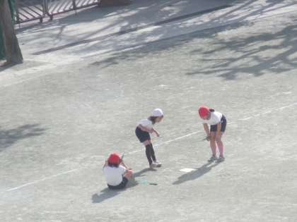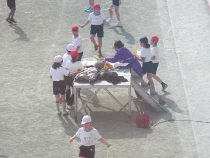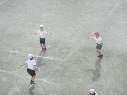 なわとびカードを片手に、元気いっぱいに跳んでいます。