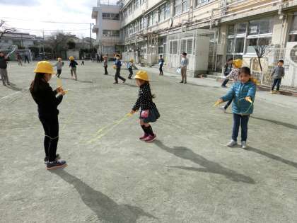 黄色い帽子の1年生も元気いっぱいに跳んでいます。