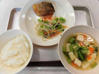 【献立】ごはん・さばのみそ煮・おひたし・すまし汁・牛乳