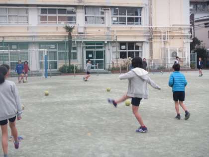 力いっぱい蹴ったボールが遠くまで飛んでいきます。