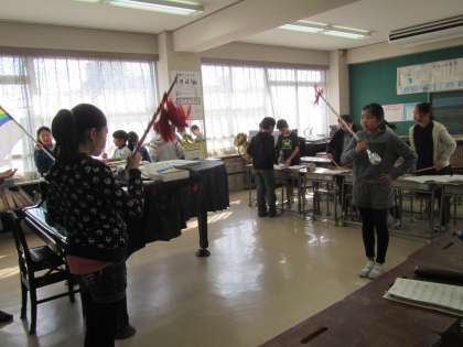 若小伝統の鼓笛を受け継ぐ5年生は、6年生から指導を受けつつ自主練習に励んでいます。