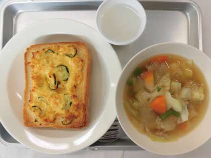 【献立】たまごトースト・白いんげんの田舎風スープ・ホワイトゼリー・牛乳