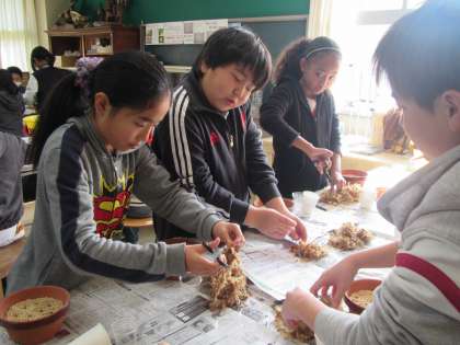 今日の3、4時間目、若小恒例企画になっているサギソウ講習会が開催されました。