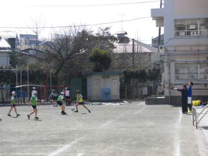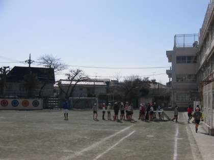 体育の時間に6年生がサッカーをしました。