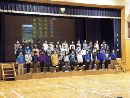 5年生は杜甫の名作「江亭」を暗唱しました。