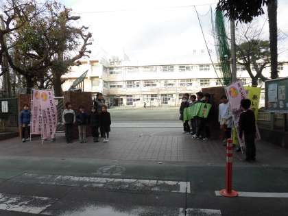 2学期にも行った若小班によるたてわりあいさつ運動。