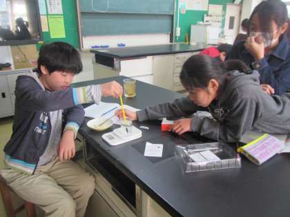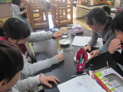 今日は5年生が理科の学習で塩を溶かし、様子を観察しました。