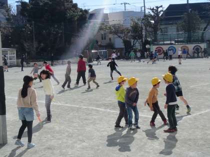 校庭では子どもたちが元気いっぱいに遊んでいます。