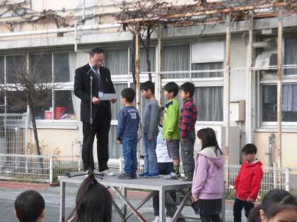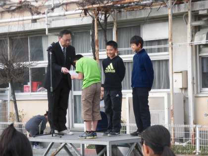 2学期に行った若小チャレンジ持久走の表彰がありました。