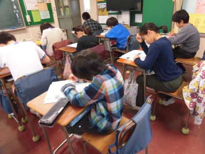 教室内に緊張感が張りつめ、鉛筆のこすれる音しか聞こえません。