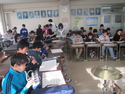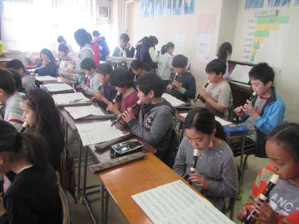 リコーダー、鍵盤ハーモニカを軸にして様々な楽器が合わさります。