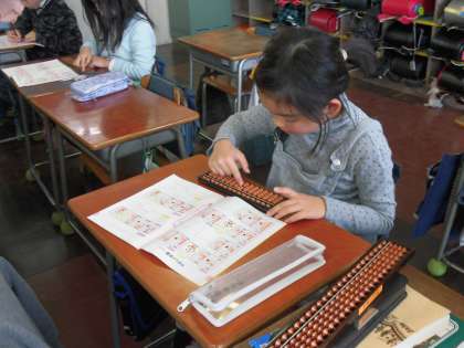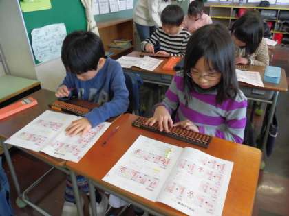 3年生が講師の先生をお招きしてのそろばん教室を受講しました。