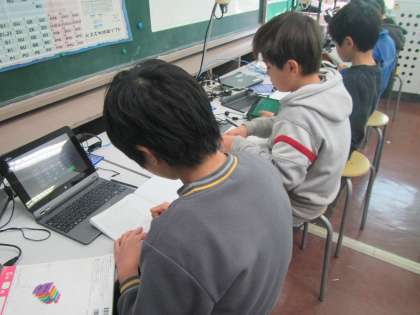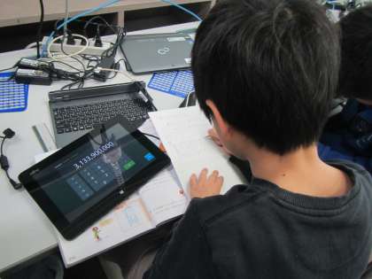 数字が大きいので既存の計算機では対応できず、みんなでタブレットを使って計算しました。