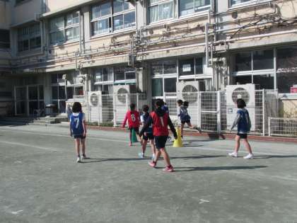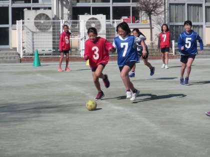 5年生がサッカーをしています。