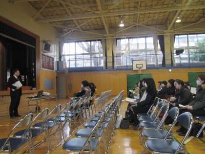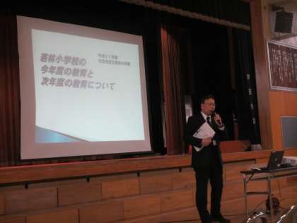 始めの全体会では、校長先生お手製のスライドショーで熱のこもった説明をしています。