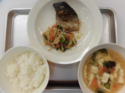 【献立】ごはん・さばのソース煮・おひたし・みそ汁・牛乳