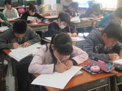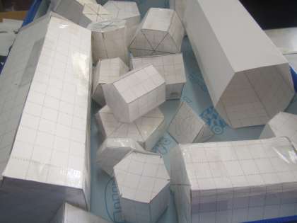 今日は正六角柱を画用紙でつくり、その性質について調べました。