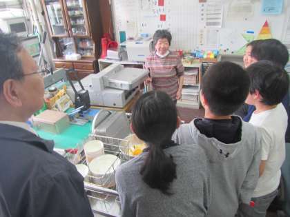 食後、職員室で食器を片づけていると栄養士さんがいました。
