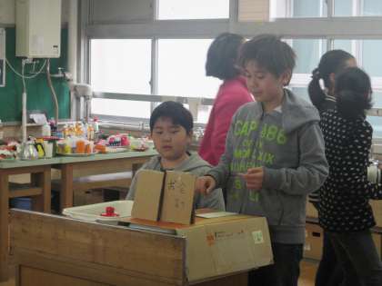 5年生が外国語活動の時間に、英語でお買い物ごっこを行いました。