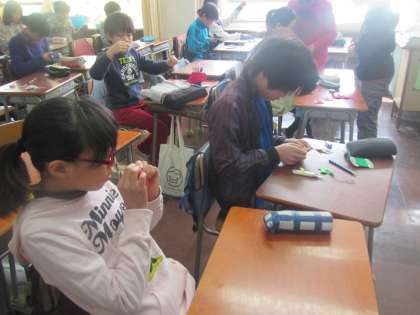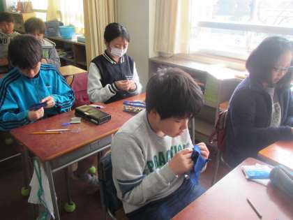 5年生が家庭科の時間にボタンつけをしました。