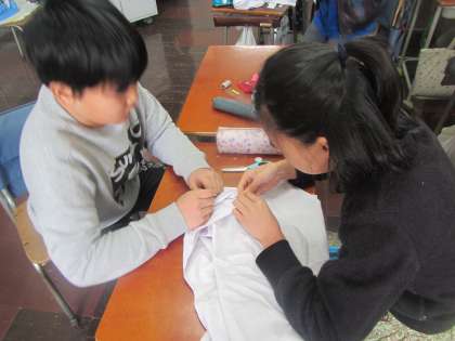 最後に給食の白衣のボタンを付け替えて学習完了!!