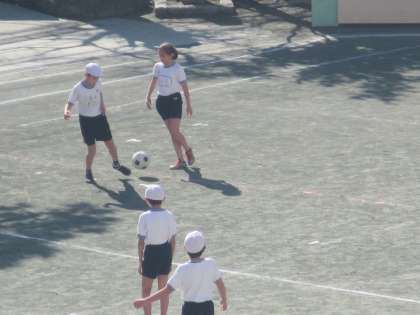 春の陽ざしの中で、力いっぱい運動してすっきりした6年生でした。