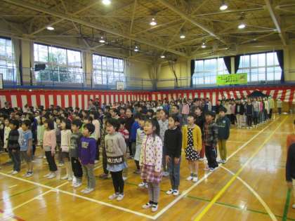 最後に行った全員朗誦は体育館中に子どもたちの声が響き渡りました。