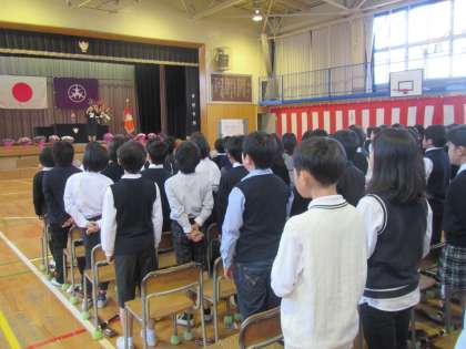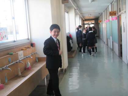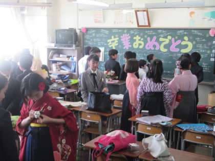 6年生が友達との別れを惜しんでいる間、4、5年生は歌の練習でスタンバイ!