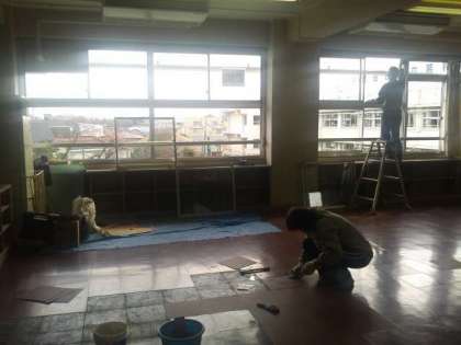 今日は主事さんや業者の方が新しく教室になるお部屋の整備をしていました。
