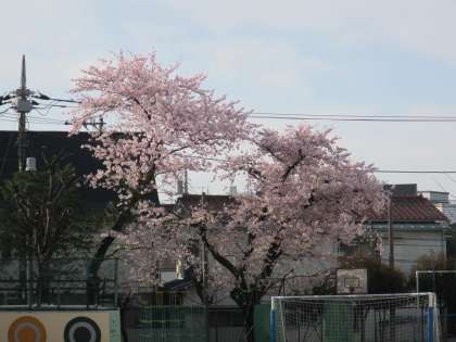 始業式と入学式を祝うために、校庭の桜も頑張って咲いてくれています。