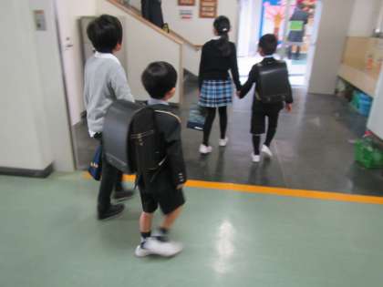 泣き出す子が一人もおらず、しっかりと教室に行き、支度をすることができました。