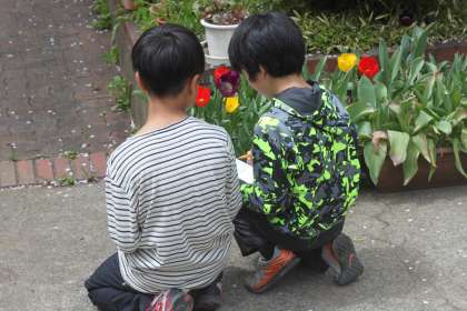 4年生が理科の学習で、春の生き物や植物を観察しました。