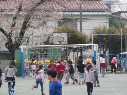 たくさんの子どもたちが校庭にでて、元気よく遊んでいました。